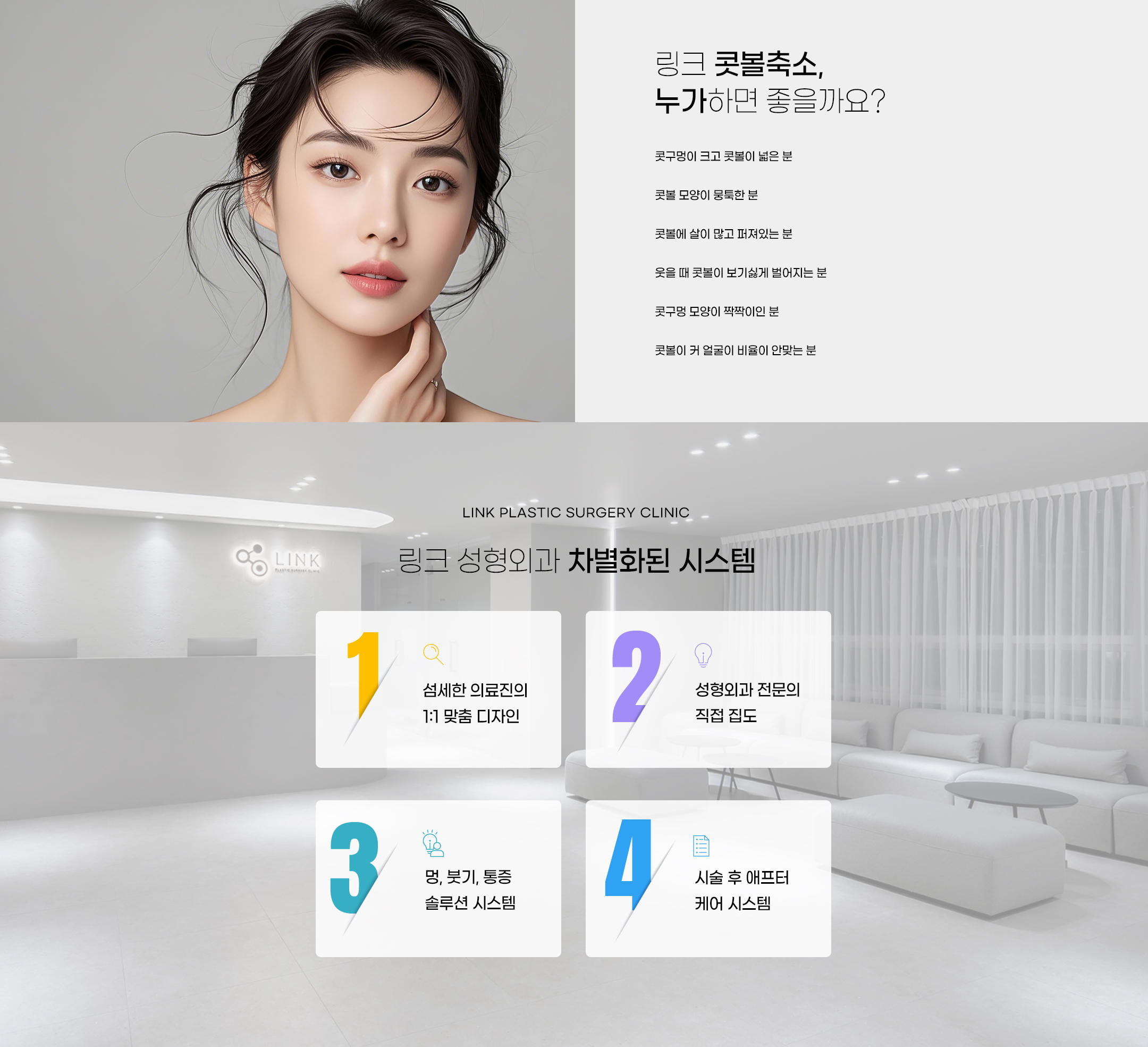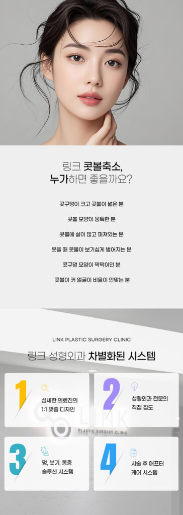 HOME 병원/원장소개 눈성형 눈성형 쌍꺼풀수술 트임수술 트임복원수술 눈밑지방재배치 상안검 | 하안검 눈꺼풀지방제거 눈재수술 코성형 코성형 콧볼축소 코재수술 인중축소 복부성형 복부성형 배꼽성형 가슴성형 쁘띠-슈링크 etc 쁘띠-슈링크 etc 립쥬란 – 입술 리쥬란힐러 리쥬란힐러 테이스티_입술필러 플라워리프팅 지방이식 엑소좀_스킨부스터 지방흡입 HOME 병원/원장소개 눈성형 눈성형 쌍꺼풀수술 트임수술 트임복원수술 눈밑지방재배치 상안검 | 하안검 눈꺼풀지방제거 눈재수술 코성형 코성형 콧볼축소 코재수술 인중축소 복부성형 복부성형 배꼽성형 가슴성형 쁘띠-슈링크 etc 쁘띠-슈링크 etc 립쥬란 – 입술 리쥬란힐러 리쥬란힐러 테이스티_입술필러 플라워리프팅 지방이식 엑소좀_스킨부스터 지방흡입 링크성형외과의원 전화 길찾기 카톡 HOME 병원/원장소개 눈성형 눈성형 쌍꺼풀수술 트임수술 트임복원수술 눈밑지방재배치 상안검 | 하안검 눈꺼풀지방제거 눈재수술 코성형 코성형 콧볼축소 코재수술 인중축소 복부성형 복부성형 배꼽성형 가슴성형 쁘띠-슈링크 etc 쁘띠-슈링크 etc 립쥬란 – 입술 리쥬란힐러 리쥬란힐러 테이스티_입술필러 플라워리프팅 지방이식 엑소좀_스킨부스터 지방흡입 ⓘ 수술 후 출혈, 감염, 염증 등의 합병증이 있을 수 있으며 주관적인 만족도는 개인마다 차이가 있을 수 있습니다 홈페이지 이용약관 개인정보이용방침 LINK PLASTIC SURGERY 병원명 : 링크성형외과의원 대표자 : 성하민, 정민수 사업자등록번호 : 174-25-01491 TEL : 02-577-8388 / FAX : 02-577-8848 서울특별시 강남구 논현동 강남대로 478 제우빌딩 4층 COPYRIGHT (C) LINK PLASTIC SURGERY, 링크성형외과 ALL RIGHT RESERVED. KOREAN PLASTIC SURGERY CLINIC