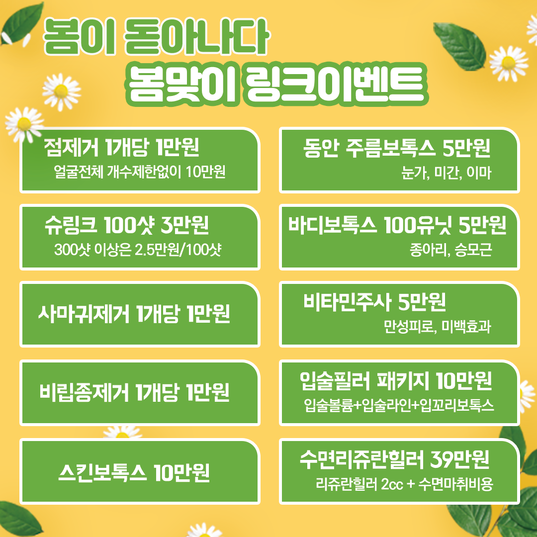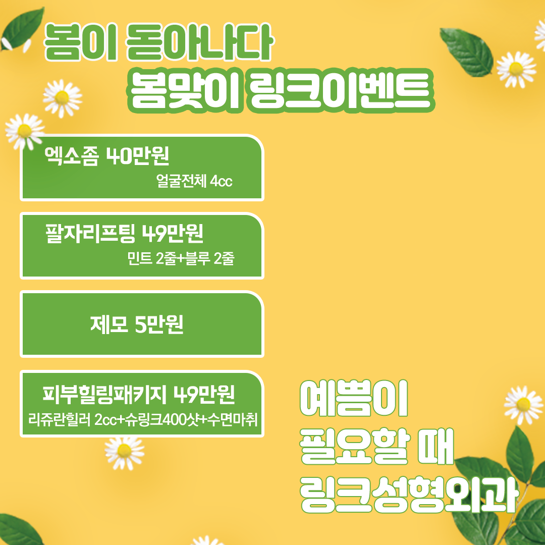 HOME 병원/원장소개 눈성형 눈성형 쌍꺼풀수술 트임수술 트임복원수술 눈밑지방재배치 상안검 | 하안검 눈꺼풀지방제거 눈재수술 코성형 코성형 콧볼축소 코재수술 인중축소 복부성형 복부성형 배꼽성형 가슴성형 쁘띠-슈링크 etc 쁘띠-슈링크 etc 립쥬란 – 입술 리쥬란힐러 리쥬란힐러 테이스티_입술필러 플라워리프팅 지방이식 엑소좀_스킨부스터 지방흡입 HOME 병원/원장소개 눈성형 눈성형 쌍꺼풀수술 트임수술 트임복원수술 눈밑지방재배치 상안검 | 하안검 눈꺼풀지방제거 눈재수술 코성형 코성형 콧볼축소 코재수술 인중축소 복부성형 복부성형 배꼽성형 가슴성형 쁘띠-슈링크 etc 쁘띠-슈링크 etc 립쥬란 – 입술 리쥬란힐러 리쥬란힐러 테이스티_입술필러 플라워리프팅 지방이식 엑소좀_스킨부스터 지방흡입 HOME 병원/원장소개 눈성형 눈성형 쌍꺼풀수술 트임수술 트임복원수술 눈밑지방재배치 상안검 | 하안검 눈꺼풀지방제거 눈재수술 코성형 코성형 콧볼축소 코재수술 인중축소 복부성형 복부성형 배꼽성형 가슴성형 쁘띠-슈링크 etc 쁘띠-슈링크 etc 립쥬란 – 입술 리쥬란힐러 리쥬란힐러 테이스티_입술필러 플라워리프팅 지방이식 엑소좀_스킨부스터 지방흡입 문의하기 문의하기 홈페이지 이용약관 개인정보이용방침 LINK PLASTIC SURGERY 병원명 : 링크성형외과의원 대표자 : 성하민, 정민수 사업자등록번호 : 174-25-01491 TEL : 02-577-8388 / FAX : 02-577-8848 서울특별시 강남구 논현동 강남대로 478 제우빌딩 4층 COPYRIGHT (C) LINK PLASTIC SURGERY, 링크성형외과 ALL RIGHT RESERVED. KOREAN PLASTIC SURGERY CLINIC
